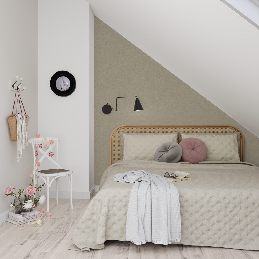 Il s’agit d’une gamme de papier peint totalement unis offrant une ambiance naturelle et chaleureuse par ces tons majoritairement taupe et sable.